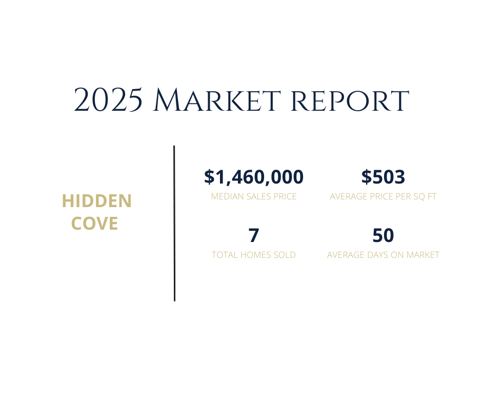 Hidden Cove Estates is a master planned neighborhood of 62 luxury homes built between approximately 1998 and 2007. Each home was designed with a unique and classic architectural style and sited on gracious acre +- parcels, all surrounded by acres of preserved natural open space with about two miles of wonderful, wooded trails that connect to Hidden Cove Park. The neighborhood also features adjoining ball fields and a tot lot.
